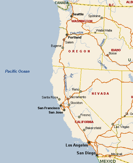 ![]() Here is the west coast of the United States. You can see Mexico at the bottom, then up to California, Oregon, then Washington state, and Canada at the top. San Diego is at the very bottom of California. As you can see, San Diego borders on Mexico. You can actually walk from San Diego to Tijuana, Mexico. San Diego is about 2 hours drive to Los Angeles...Disneyland, Hollywood, Beverly Hills 90210. Its about a 5 hour drive to Las Vegas right out across the desert. In the winter, snow skiing is only a few hours away. And some of the best beaches in the United States (outside Hawaii) are in San Diego. Click here to continue our journey... |